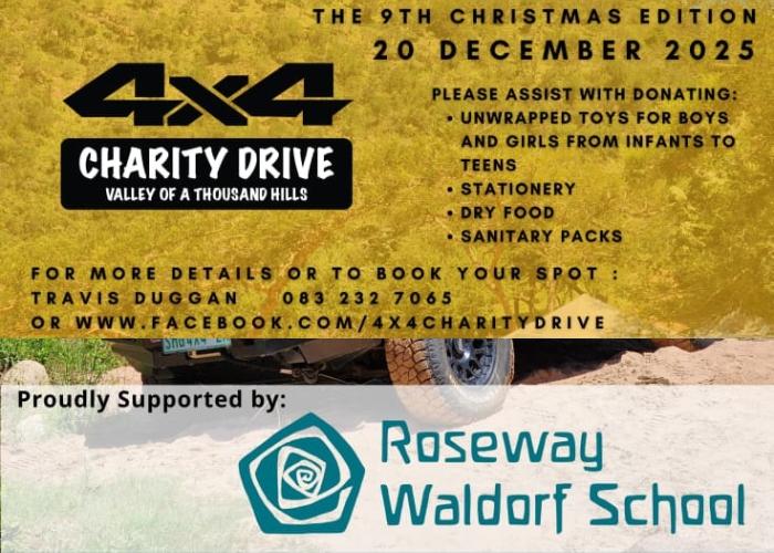 This festive season, Roseway Waldorf School is proud to serve as an official drop-off hub for the 9th Annual 4x4 Charity Drive, a meaningful community initiative supporting families in the Valley of 1000 Hills.